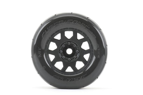 JETKO JK1804CB - Jetko EX Tyre MT Slick Super Sonic Belted 3.8" Black Wheel 17mm 2 pcs