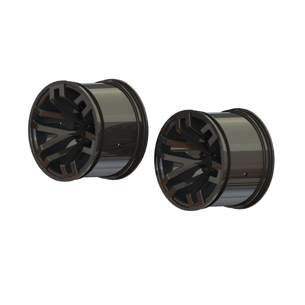 ARRMA 1/10 MT Front/Rear 2.8 Wheels 14mm Hex Black Chrome (2)