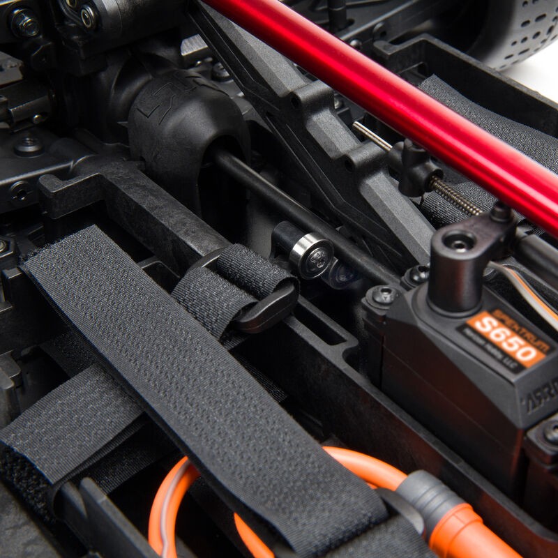 En anden funktion, der er ny på INFRACTION ™ 6S BLX 4WD, er en håndbremse. Chassiset inkluderer et modul til en bagudluftet skivebremse og en kraftig Spektrum® SPMS650 bremseservo. Du styrer håndbremsen fra en bekvem kontakt på DX3 ™ -senderen til spændende drifting, "hooning" og stunthandling.