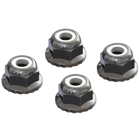 ARRMA Flanged Nyloc Locknut 4mm Silver (4)