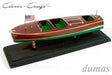 The Laser Classic collection from Dumas is the best of both worlds. The technology and precision of laser cutting combined with our ever-popular Chris-Craft line. The Classic Collection premiers with the introduction of three new kits. They are the 1929 Chris-Craft 24 ft. Runabout, kit 1701, the 1949 Chris-Craft 19 ft. Racer, kit 1702, and the 1938 Chris-Craft 27 ft. Triple Cockpit Barrelback, kit 1703. The Classic Collection kits feature laser cut balsa and mahogany parts, peel and stick decal set, display base with pedestals, step-by-step instructions, and a complete set of cast urethane deck fittings. These static display models will look great in either home or office and are great kits for every level of model builder. Start your collection today of the new Laser Classic Collection.- Length: 343 mm