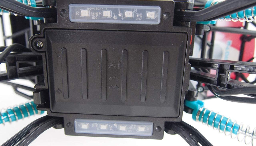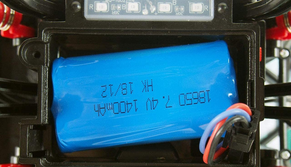 Frihøjden kan stilles op og ned via fjernbetjeningen, så den bliver flad som en almindelig RC bil eller høj som en monstetruck. Fjernbetjeningen er i øvrigt et syn som man sjældent ser mage, fuld af funktioner og styringsmuligheder! Hele 10 kanaler har bilen, hvilket er 8 mere end en alm. fjernstyret bil!