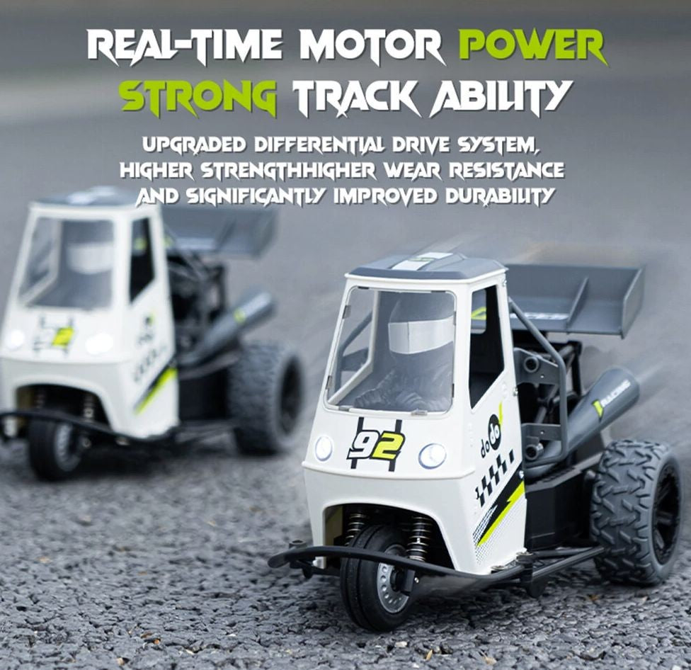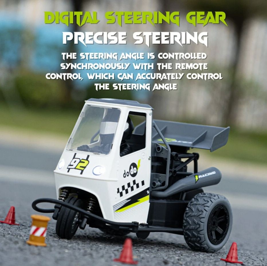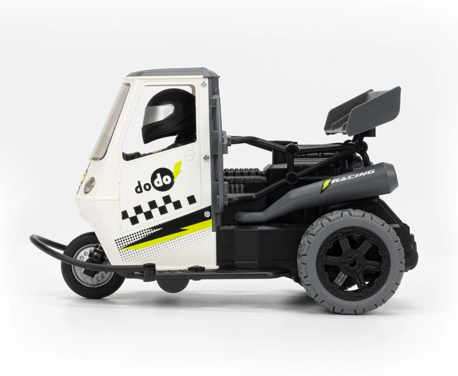 DO DO tri-bike er en genial fjernstyret scooter - den har fuld styring i både gas og drejning, dvs. du har total kontrol. Derudover har den ægte røg bagud (fyld blot vand i den) samt rigtige motorlyde som følger hastigheden og opstart.