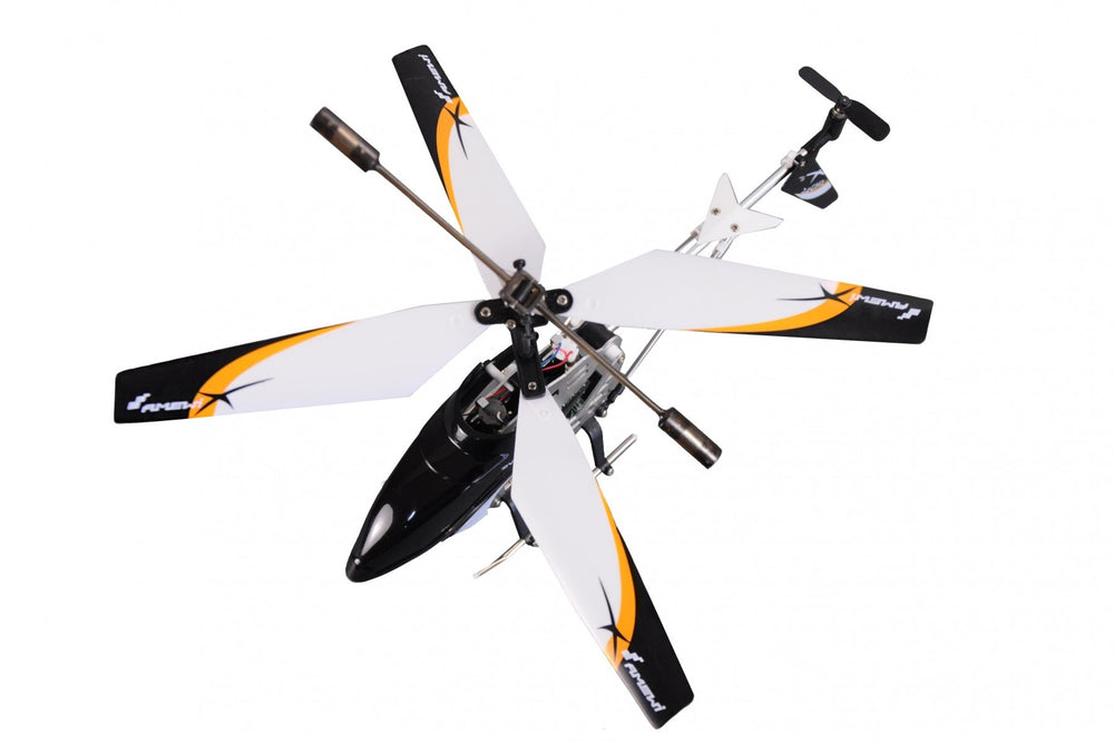 Flot lille fjernstyret helikopter i legetøjsklassen. Dobbeltrotor design gør den let at styre.