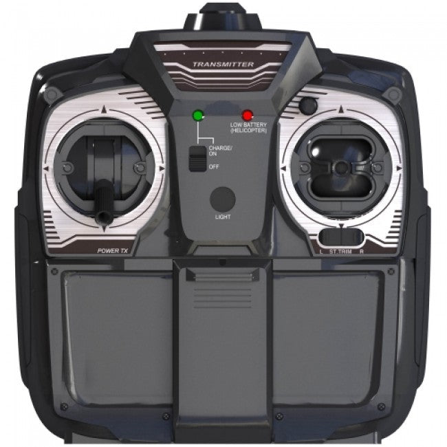 Det dobbelte rotorsystem og LED-lyset drives af et kraftigt Li-Po batteri, som på én opladning giver ca. 10 minutters flyvetid. Når du skal lade batteriet op, gøres det via det medfølgende USB-kabel, tilsluttet enten fjernbetjeningen eller en computer, og efter ca. 30 minutter er Sky Blaze flyveklar igen!