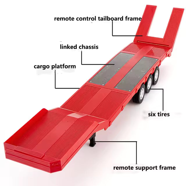 Denne model i skala 1:14 er designet til at passe direkte sammen med HUINA Scania 770S RC Haulage Truck, men kan også anvendes med andre 1:14 skala-trækker enheder med standard femtehjulskobling. Med sit solide metalchassis, slidstærke dæk og funktionelle detaljer giver traileren både styrke, funktionalitet og et autentisk udseende på enhver byggeplads, bane eller hylde.