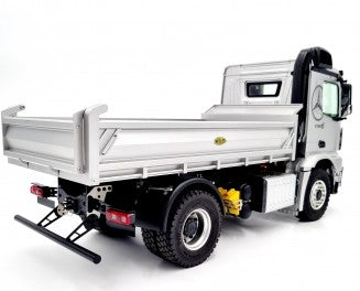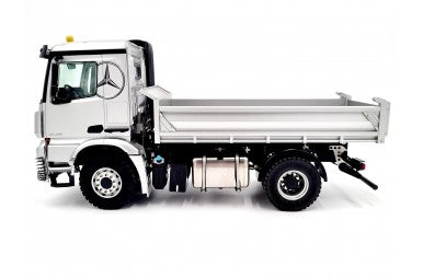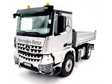 Lastbilen er komplet med elektronik, servoer, controller, fjernbetjening, batteri og den er med det fuldt licenserede Merceds-Benz Arocs mærke i skala 1:14