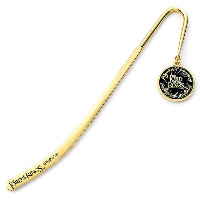 Unleash your adventurous side with the The Lord of the Rings logo bookmark. This iconic accessory commemorates the epic quest to destroy the mythical lost ring and will enchant fans everywhere. If you’re reading the book, this is an essential accessory for any devoted fan! An essential addition to any fan’s collection, from the official licensed series of accessories for ages 14 + Gold tone bookmark with black enamel disc.