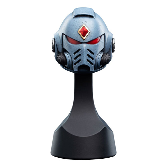 The rugged spirit of the Space Wolves is brought to life in this stunning helmet replica. Every detail, from the iconography to the feral design, speaks to the savage grandeur of the Sons of Russ. Meticulously sculpted and painted, this replica captures the essence of the chapter's untamed nature, making it a must-have piece for collectors who admire the ferocity of the Space Wolves.