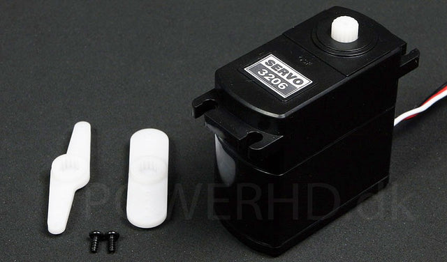 Velegnet til store modeller f.eks. i biler, fly og både. Med et træk på 20kg/cm og en lav pris er 3206A en meget attraktiv servo...