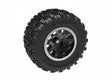 Large 4" Sledgehammer tires are ready for action with multiple layers of biting edges for sure-footed traction. Their open-block tread design clears away mud and debris and features a heavy-duty rubber compound specially formulated to resist tearing. The tires come mounted to black dual-profile wheels with a satin beadlock ring. The wheels provide extra clearance for the suspension components and give Mini Maxx a tough, menacing appearance.