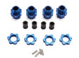 Wheel hubs, splined, 17mm, short (2), long (2)/wheel nuts, splined, 17mm (4) (blue-anodized)/ hub retainer M4x0.7 (4)/axle pin (4)/wrench, 5mm