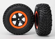 Tire & wheel assy, glued (SCT black, orange beadlock wheels, SCT off-road racing tires, foam inserts) (2) (2WD front)