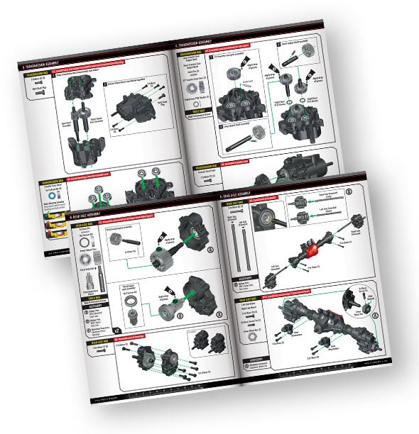 TRX-4 Sport Unassembled Kit er ikke kun for eksperthobbyister. Traxxas går den ekstra mile for at gøre fuldfarve instruktionsbogen nem at følge og sjov at bruge. Hver sektion svarer til en mærket taske med trinvise montageanvisninger. True-to-scale del illustrationer og lineal diagrammer gør det nemt at skelne mellem forskellige skruer, lejer og gear. Nyttige samlingstips og klare illustrationer tager frustrationen ud af samleprocessen. Hav det sjovt på arbejdsbordet og på sporet med det nye TRX-4 Sport Kit.
