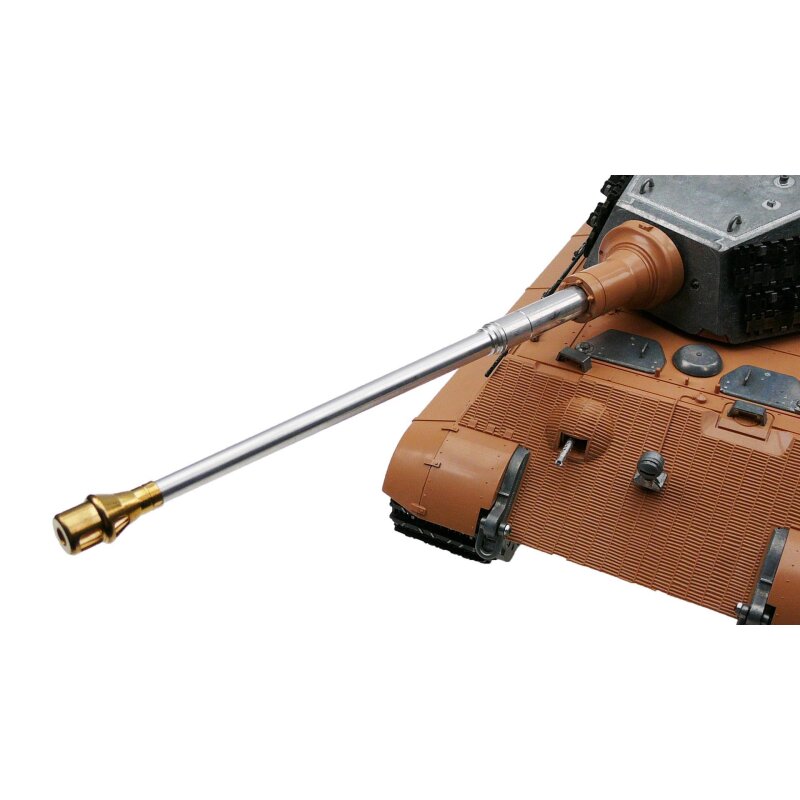 Den kraftfulde model er udstyret med en 2.4 GHz fjernbetjening og modtager, samt et IR kampsystem, der muliggør interaktive kampe mellem køretøjer fra samme serie. Kraftmotorerne med optimeret drejningsmoment giver Kingtiger en præcis og jævn styring. Metalgear med robuste tandhjul og en forbedret gearratio leverer højere kraft. Proportional kontrol tillader tanken at starte meget langsomt og øge hastigheden jævnt. Kingtigeren kan køre fremad og baglæns, samt dreje til venstre og højre på stedet. Tårnrotationen på 360 grader og muligheden for at løfte og sænke kanonen, sammen med realistiske motorlyde, rekyler under skydning, lysglimt og røgskyer fra udstødningsrørene, fuldender den realistiske oplevelse.