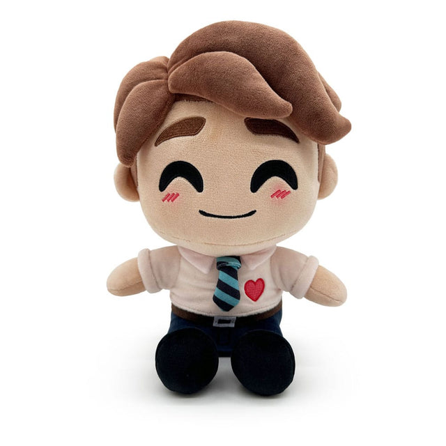 Nick just turned the corner after giving Charlie a kiss goodbye and is blushing so bright he doesn't need his jacket! This new 9 inch tall plush shows Nick seated with his legs kicked forward and wearing his school uniform without his jacket and vest. With perfectly quaffed brown hair swooped to the side and the sleeves oh his white shirt rolled up, sitting over his heart is a red heart to show his love for Charlie as his face is happy and is blushing in the way only kissing the love of your life can make you! This plush is packed to the seams with 100% PP cotton and is made of a mixture of minky, sublimated tricot and felt materials, perfect for cuddling and cuddling and cuddling some more!