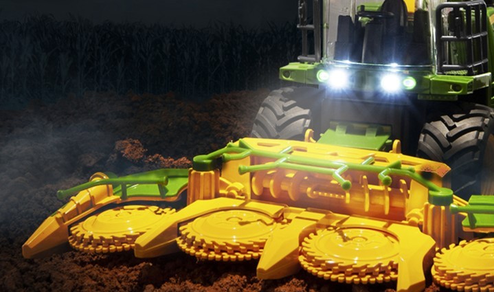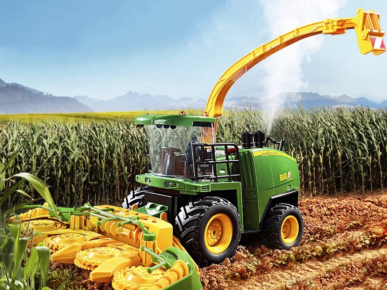 Fjernstyret mejetærsker med ægte røg, lys og roterende majs-plukker