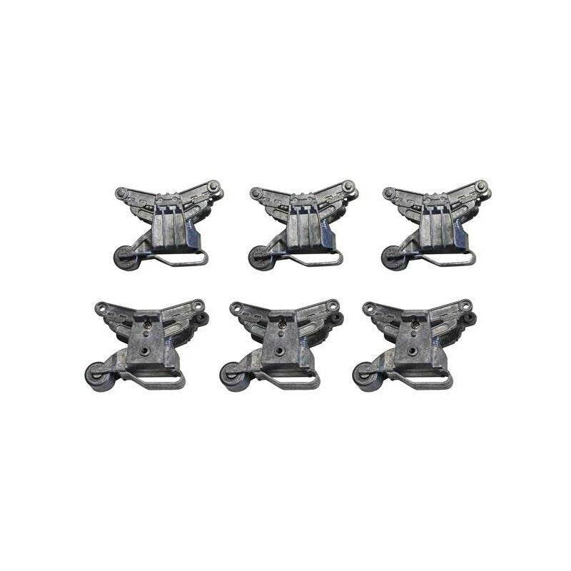 - Indhold: 3 venstre og 3 højre metal-affjedringer (uden hjul)